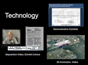 Trial Technology Consulting: Courtroom technology, animations, audio/visual, graphic design, trial support & presentation, video clips & editing, video synchronization to transcript and war room support.